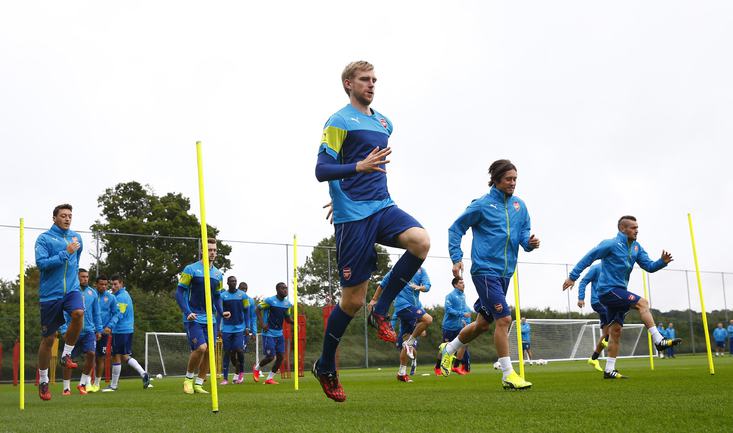 Лондон. Футболисты лондонского "Арсенала" готовятся к ответному поединку 4-го отборочного раунда Лиги чемпионов против "Бешикташа" (счет первого матча - 0:0). Фото AFP, REUTERS