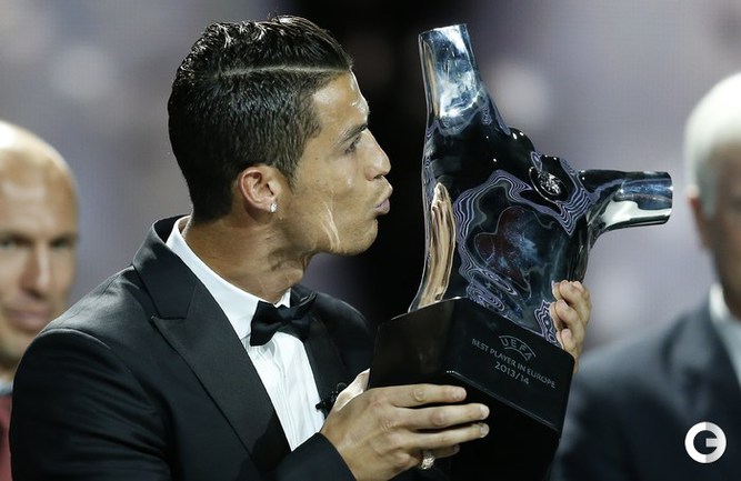 Форвард "Реала" Криштиану Роналду стал лучшим игроком Европы сезона-2013/14 по версии УЕФА. В тройке номинантов также значились два представителя "Баварии" – вратарь Мануэль Нойер и полузащитник Арьен Роббен. Фото AFP