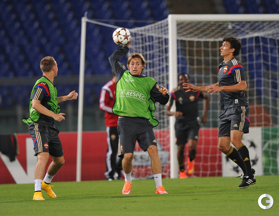 Московские армейцы провели тренировку в Риме тренировку на Олимпийском стадионе накануне стартового матча Лиги чемпионов против "Ромы". Фото - Александр Федоров, "СЭ"