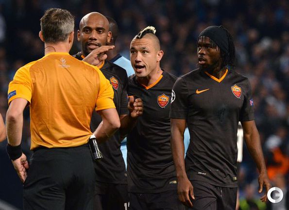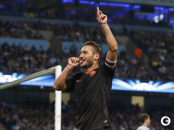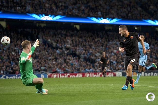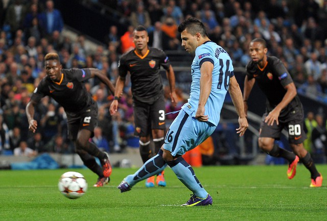 Лига чемпионов. Групповой турнир. Группа Е. 2-й тур. "Манчестер Сити" (Англия) – "Рома" (Италия) – 1:1 (1:1). Голы: Агуэро, 4 – с пенальти (1:0). Тотти, 23 (1:1). Фото AFP, REUTERS