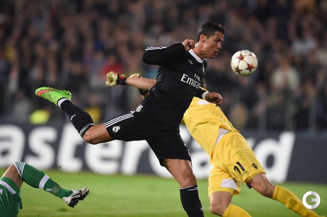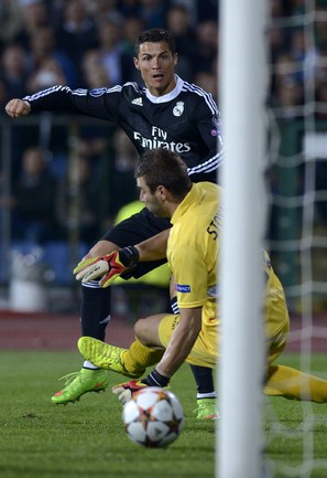 Лига чемпионов. Групповой турнир. 2-й тур. Группа B. "Лудогорец" (Болгария) - "Реал" (Испания) - 1:2 (1:1). Голы: Марселинью, 6 (1:0). Криштиану Роналду, 24 - с пенальти (1:1). Бензема, 77 (1:2). Нереализованный пенальти: Криштиану Роналду, 10 (вратарь). Фото AFP, REUTERS