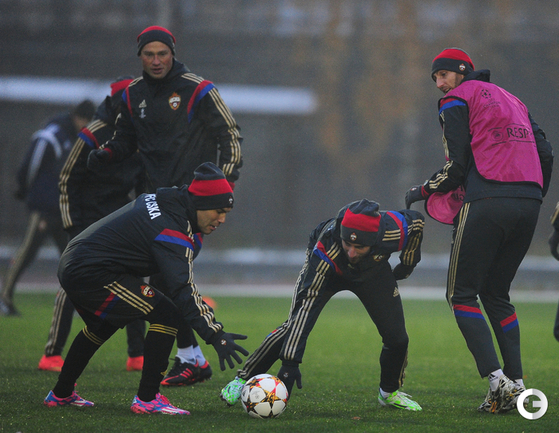 Ватутинки. Футбол. Тренировка ПФК ЦСКА накануне матча с "Манчестер Сити". Напомним, что в прошлом розыгрыше Лиги армейцы дважды проиграли англичанам. Фото - Антон Сергиенко, "СЭ"