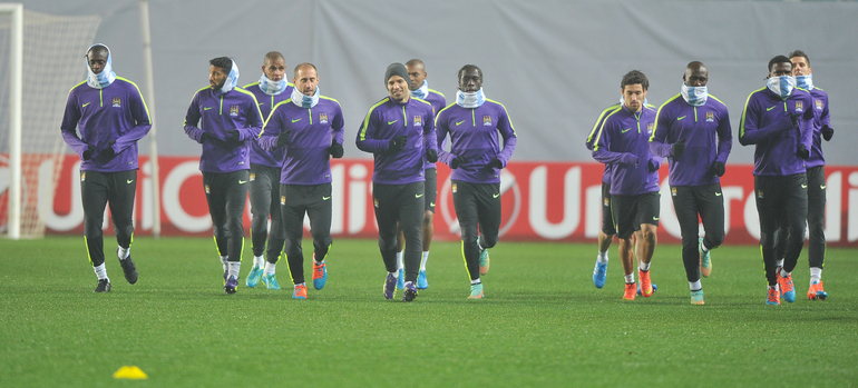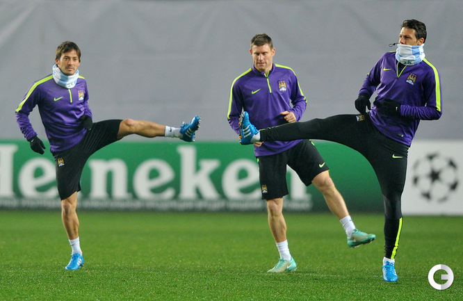 Накануне матча Лиги чемпионов против ЦСКА футболисты "Манчестер Сити" провели тренировку на "Арене Химки". Фото - Александр Федоров, "СЭ"