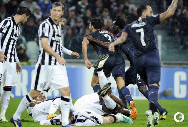 Лига чемпионов. Групповой турнир. 4-й тур. Группа А. "Ювентус" (Италия) – "Олимпиакос" (Греция) – 3:2 (1:1). Голы: Пирло, 21 (1:0). Ботиа, 24 (1:1). Ндинга, 61 (1:2). Роберто, 65 – в свои ворота (2:2). Погба, 66 (3:2). Нереализованный пенальти: Видаль, 90+5 (вратарь). Фото AFP, REUTERS