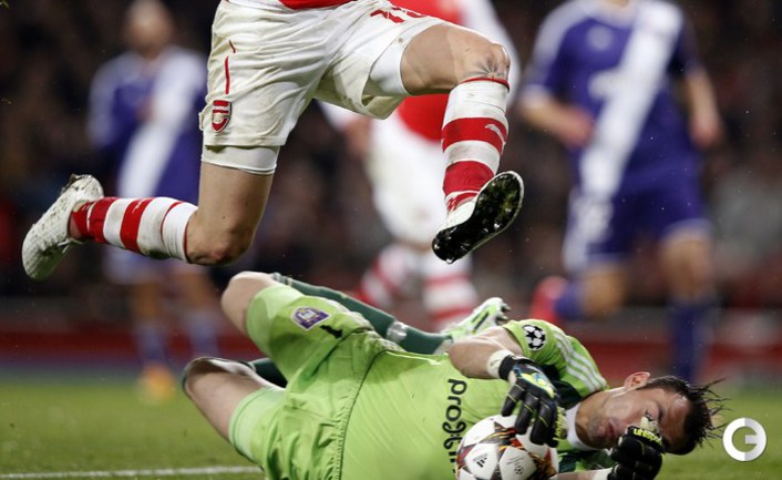 Лига чемпионов. Групповой турнир. 4-й тур. Группа D. "Арсенал" (Англия) – "Андерлехт" (Бельгия) – 3:3 (2:0). Голы: Артета, 25 - с пенальти (1:0). Санчес, 29 (2:0). Окслейд-Чемберлен, 58 (3:0). Ванден Борре, 61 (3:1). Ванден Борре, 73 - с пенальти (3:2). Митрович, 90 (3:3). Фото AFP, REUTERS