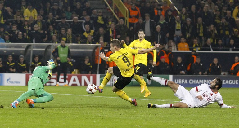 Лига чемпионов. Групповой турнир. 4-й тур. Группа D. "Боруссия" Д (Германия) – "Галатасарай" (Турция) – 4:1 (1:0). Голы: Ройс, 39 (1:0). Папастатопулос, 56 (2:0). Хакан Балта, 70 (2:1). Иммобиле, 74 (3:1). Семих Кайя, 86 - в свои ворота (4:1). Фото AFP, REUTERS