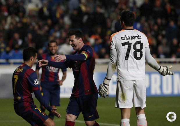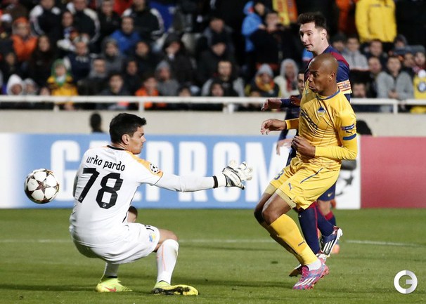 Лига чемпионов. Групповой турнир. 5-й тур. Группа F. АПОЭЛ (Кипр) - "Барселона" (Испания) - 0:4 (0:2). Голы: Суарес, 27 (0:1). Месси, 38 (0:2). Месси, 58 (0:3). Месси, 87 (0:4). Фото AFP, REUTERS