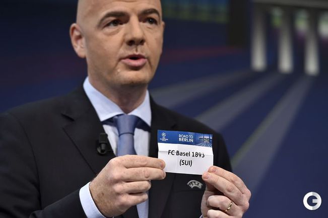 В Ньоне состоялась жеребьевка 1/8 финала Лиги чемпионов. Все пары выглядят следующим образом (команды, указанные первыми, начинают противостояния дома): "ПСЖ" (Франция) – "Челси" (Англия), "Манчестер Сити" (Англия) – "Барселона" (Испания), "Байер" (Германия) – "Атлетико" (Испания), "Ювентус" (Италия) – "Боруссия" Д (Германия), "Шальке" (Германия) – "Реал" (Испания), "Шахтер" (Украина) – "Бавария" (Германия), "Арсенал" (Англия) – "Монако" (Франция), "Базель" (Швейцария) – "Порту" (Португалия). Фото AFP