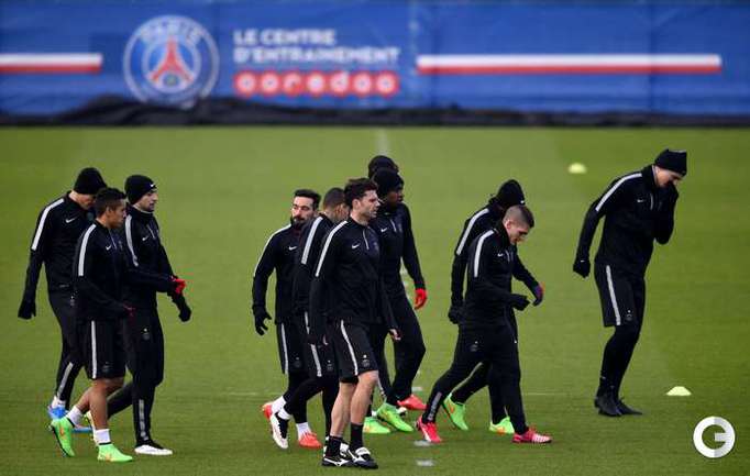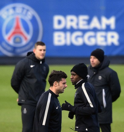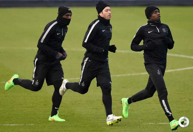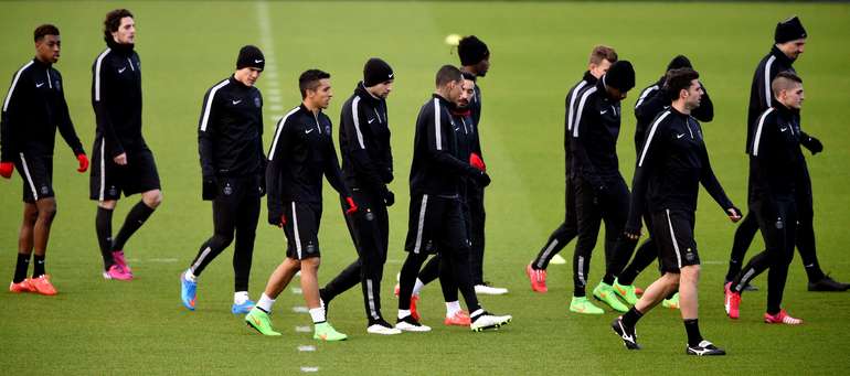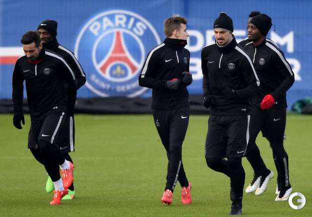 Тренировка "ПСЖ" перед первым матчем 1/8 финала Лиги чемпионов против лондонского "Челси". Форвард парижан Златан Ибрагимович работал под руководством тренера лондонцев Жозе Моуринью в итальянском "Интере". Фото AFP