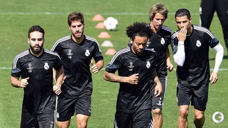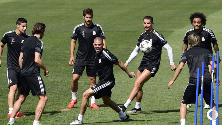 Тренировка мадридского "Реала" накануне ответного полуфинального матча Лиги чемпионов против "Ювентуса". Первый матч в Турине закончился победой "Юве" - 2:1. Фото AFP и REUTERS