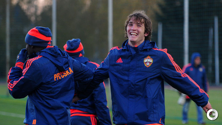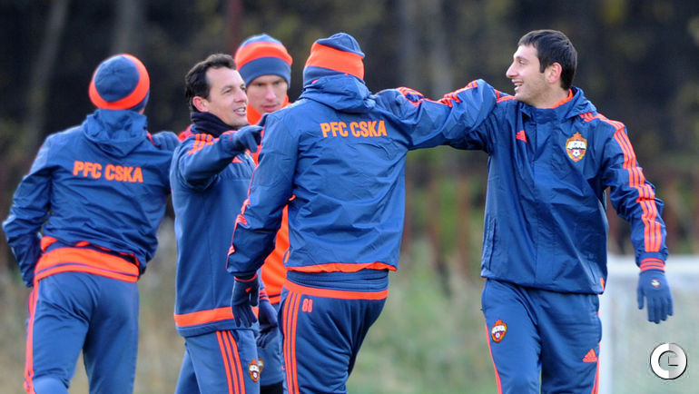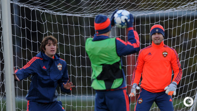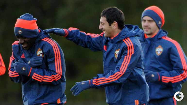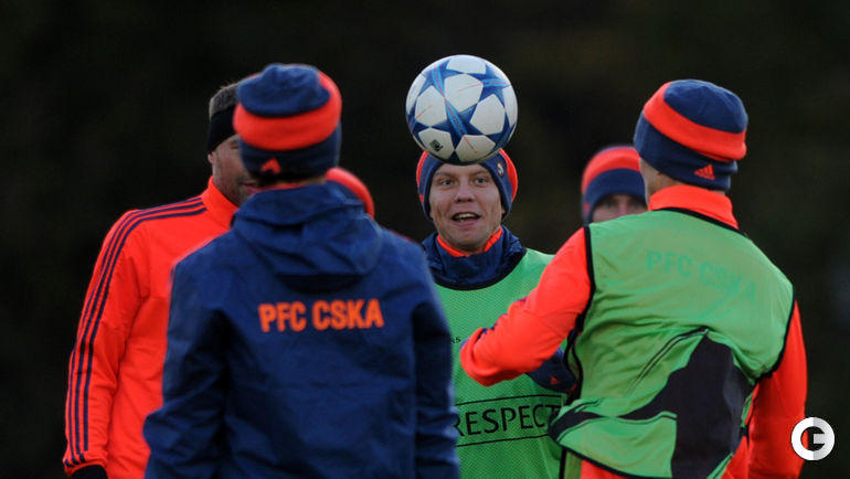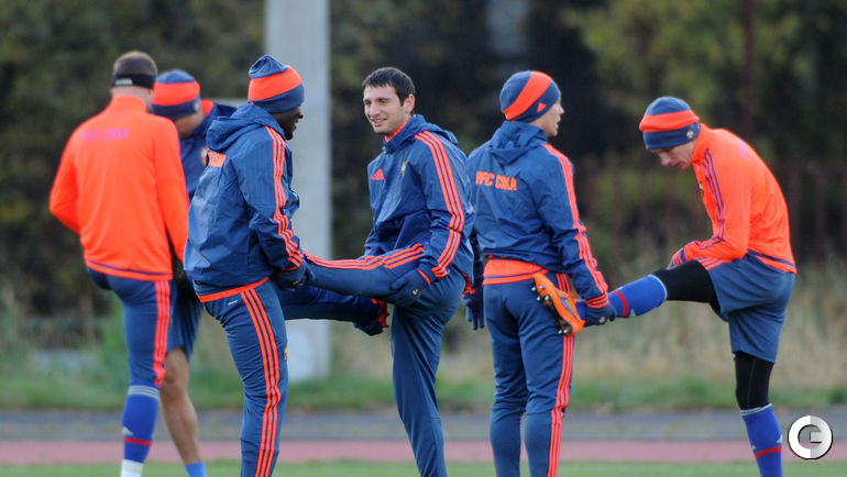 Веселая тренировка ЦСКА накануне матча с "МЮ"