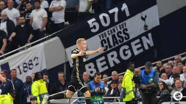 "Аякс" одержал гостевую победу над "Тоттенхэмом" в первом матче 1/2 финала Лиги чемпионов – 1:0. Единственный мяч на 15-й минуте встречи провел Донни ван де Бек. На 39-й минуте из-за серьезной травмы головы был заменен защитник лондонцев Ян Фертонген, которого врачи после оказания помощи выпустили на поле.
