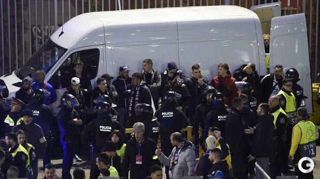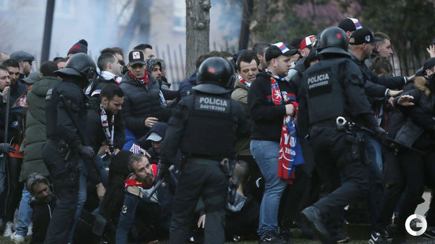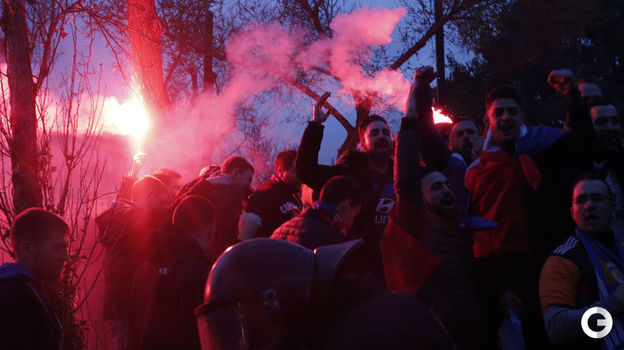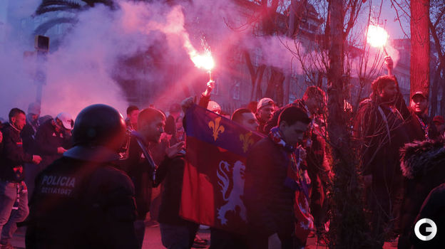Фанаты "Лиона" начали "зажигать" перед гостевой игрой 1/8 финала Лиги чемпионов с "Барселоной".