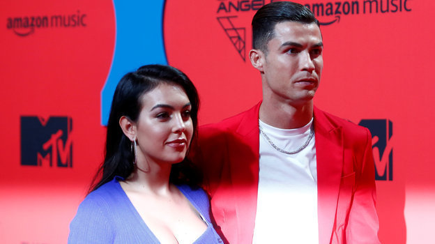 Португальский форвард «Ювентуса» Криштиану Роналду и его девушка Джорджина Родригес стали гостями церемонии вручения премий MTV Europe Music Awards. На красной дорожке подруга футболиста появилась в синем платье с откровенным вырезом, а он сам надел красный костюм.