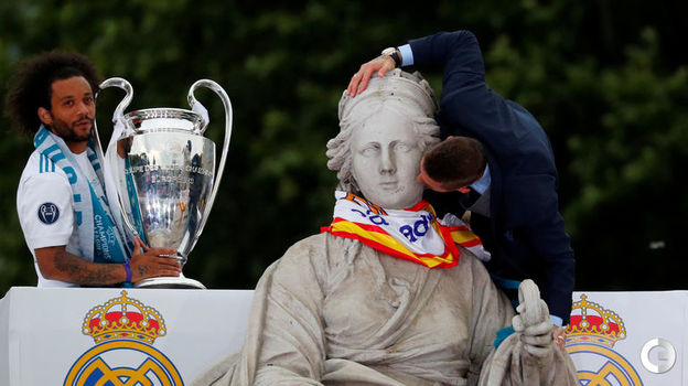 "Реал" в субботу в финале Лиги чемпионов в Киеве победил "Ливерпуль" (3:1). Для мадридского клуба этот трофей стал 13-м. В воскресенье команда провела чемпионский парад, и болельщики "Королевского клуба" заполонили улицы и стадион "Сантьяго Бернабеу".