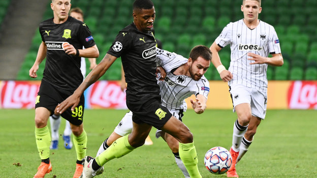 В первом матче четвертого отборочного раунда Лиги чемпионов «Краснодар» победил ПАОК (2:1). На седьмой минуте гости могли выйти вперед, но удар Димитриоса Пелкаса с пенальти отразил Матвей Сафонов. На 33-й минуте форвард реабилитировался и забил с игры. После этого на 39-й минуте с пенальти сравнял результат Виктор Классон. Победный мяч хозяевам удалось провести на 70-й минуте. Гол в свой актив записал Реми Кабелла. Ответный матч пройдет 30 сентября.
