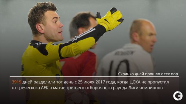 Победив со счетом 2:0 греческий АЕК, ЦСКА не только обеспечил себе комфортное преимущество перед ответным матчем, но и не позволил продолжиться черной серии вратаря Игоря Акинфеева. Факты "СЭ" о черной серии голкипера, который пропускал голы в Лиге чемпионов 10 лет подряд. Серия прервалась на 44-й игре.