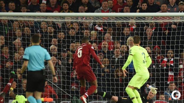 "Ливерпуль" разгромил "Барселону" в ответном матче 1/2 финала Лиги чемпионов - 4:0. Счет на 7-й минуте открыл Дивок Ориги. Во втором тайме Джорджиньо Вайналдум вышел на замену и сделал дубль за три минуты. На 79-й минуте Ориги забил свой второй мяч и установил окончательный счет в матче. В первой игре "Ливерпуль" уступил 0:3 и по сумме встреч смог пробиться в финал.