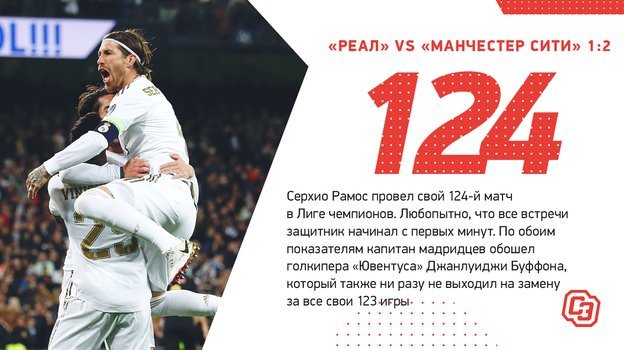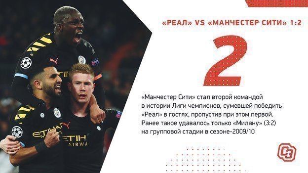 Интересные цифры по итогам первого матча 1/8 финала Лиги чемпионов между «Реалом» и «Манчестер Сити» (1:2).