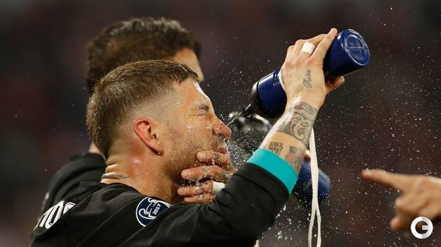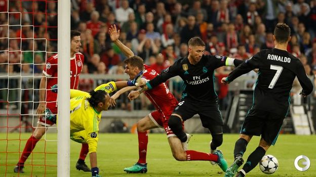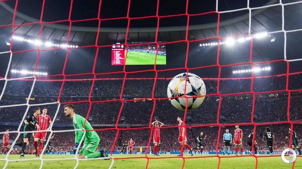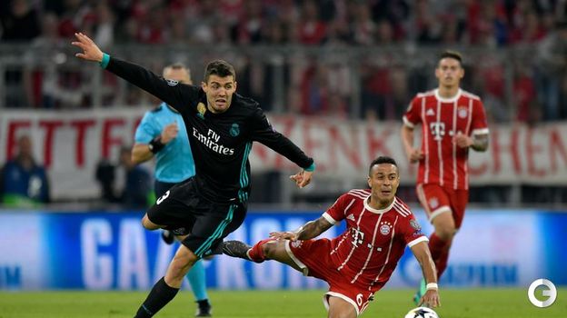 Мадридский "Реал" в гостях обыграл "Баварию" со счетом 2:1 в первом матче полуфинала Лиги чемпионов. Испанский клуб одержал волевую победу, проигрывая по ходу встречи. В составе победителей голами отличились Марселу и Марко Асенсио, у "Баварии" счет в этой встрече открыл Джошуа Киммих. Этот мяч стал 100-м для "Баварии" в Лиге чемпионов под руководством Юппа Хайнкеса. Полузащитник "Баварии" Арьен Роббен из-за травмы был заменен на восьмой минуте. Мадрицы продлили победную серию во встречах с мюнхенцами до шести матчей.