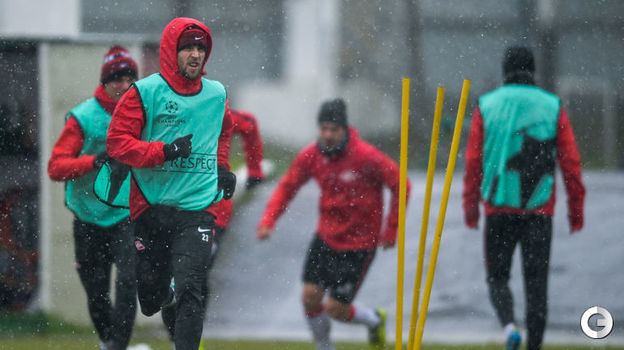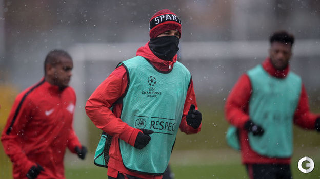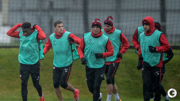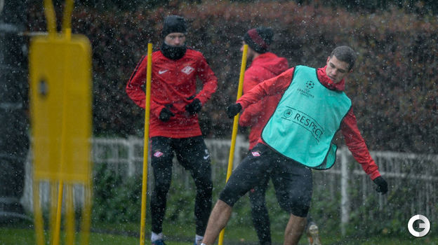 В среду "Спартаку" предстоит выездная встреча группового турнира Лиги чемпионов против "Севильи". А сегодня красно-белые провели тренировку в непростых погодных условиях.