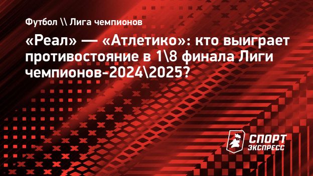 «Реал» и «Атлетико» сыграют в 1/8 финала Лиги чемпионов-2024/25. Первый матч — 4 марта, ответный — 12 марта.