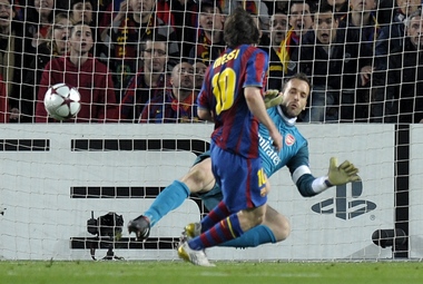 "Барселона" взорвалась тут же. И ее главная движущая сила - Лионель Месси, показывающий в последнее время просто фантастический футбол. Аргентинец прорвался по центру, дошел до штрафной, но там уткнулся в двух центральных защитников. Однако сказалась несыгранность пары Вермален - Сильвестр: француз не сумел толком выбить мяч, и Месси, подхватив его, тут же пробил из-под игроков хлестко и точно под перекладину. С таким ударом справиться голкиперу было невозможно.