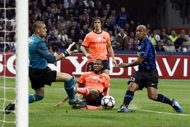 И тут-то стало заметно, что "Барса", конечно, грозна, но не так, как все привыкли. Месси оборона "Интера" взяла в железный оборот, с безжалостной грамотностью передавая лучшего игрока мира по цепочке от Камбьяссо к Дзанетти через Самуэля. И вряд ли в эти моменты кто-либо из четверых думал о совместной борьбе за медали мирового первенства в составе сборной Аргентины. Сведя к минимуму опасность вблизи собственных ворот, в концовке тайма хозяева будто бы копили силы для атакующего рывка. По крайней мере, после перерыва "интеристы" появились на поле с явной решимостью избавиться от равновесия в счете. Появились на пару минут раньше гостей – и ринулись вперед со свистком на начало тайма. Не прошло и трех минут, как ассистентом снова выступил Милито. Догнав мяч на правом краю штрафной, второй бомбардир серии А создал голевую возможность Майкону. Бразильский защитник, забивающий почаще иных форвардов, не растерялся и в силовой борьбе протолкнул мяч мимо Вальдеса с линии вратарской – 2:1.