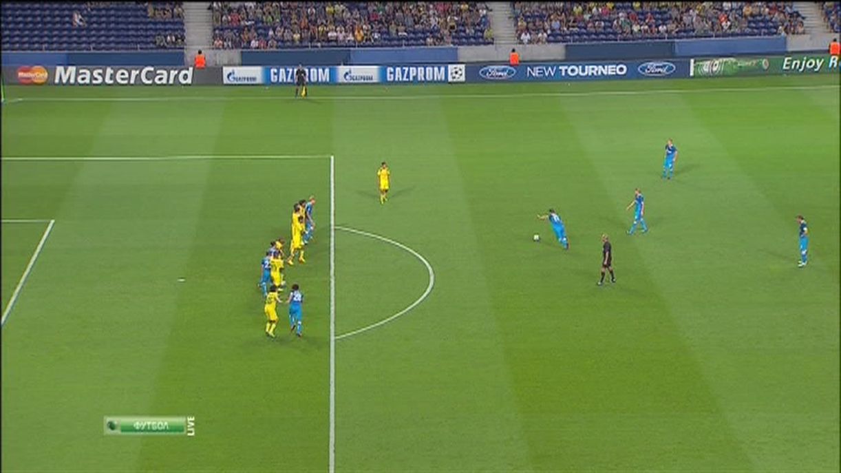 На 85-й минуте матча Александр Кержаков блистательно исполнил штрафной, перекинув не только "стенку", но и голкипера "Пасуша" Дегру.