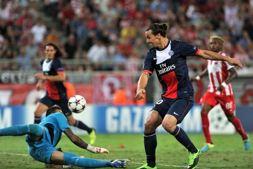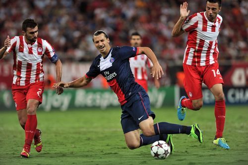 Защитники "Олимпиакоса" не испугались грозного нападающего "ПСЖ" Златана Ибрагимовича.