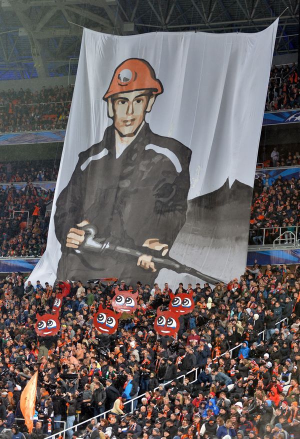 "Горняки" подошли к поединку против английского гранда со всей серьезностью, разместив на трибуне "Донбасс Арены" шахтера в рабочей амуниции.