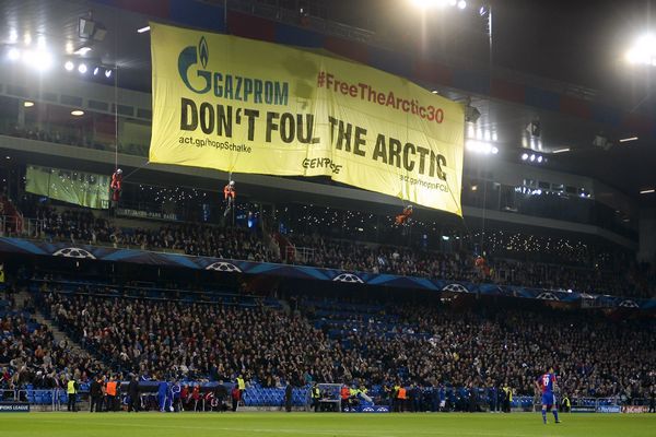 Еще одним важным событием встречи стала масштабная акция протеста против одного из спонсоров Лиги чемпионов - "Газпрома". Российскую компанию борцы за чистоту окружающей среды обвиняют в загрязнении Арктики.