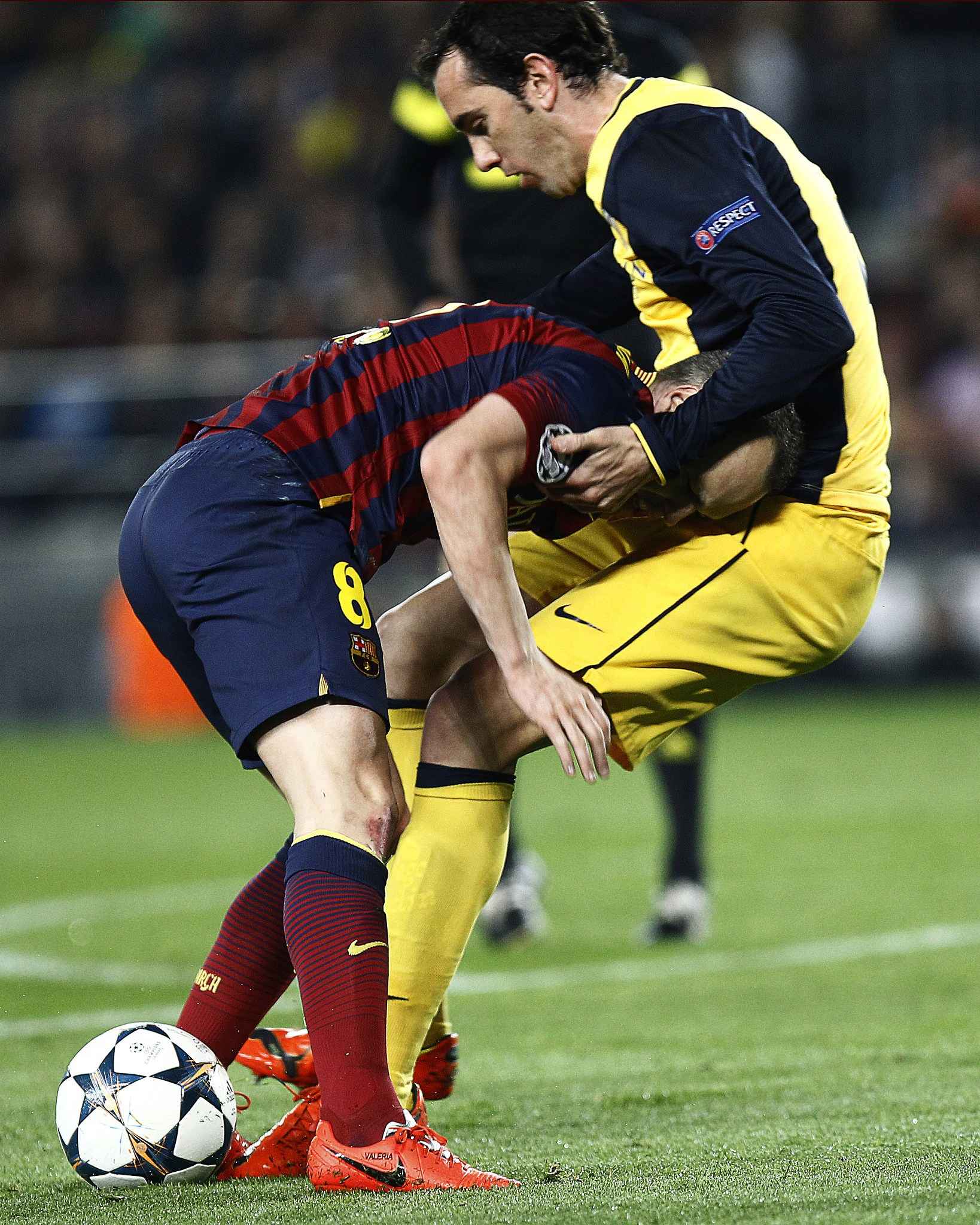 Первый тайм поединка на "Ноу Камп" ознаменовался двумя травмами основных футболистов команд: центральный защитник сине-гранатовых Жерар Пике покинул поле из-за проблем со спиной после неудачного приземления. Теперь он рискует пропустить около месяца: