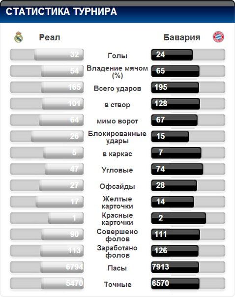СТАТИСТИКА "РЕАЛА" И "БАВАРИИ" В НЫНЕШНЕМ РОЗЫГРЫШЕ