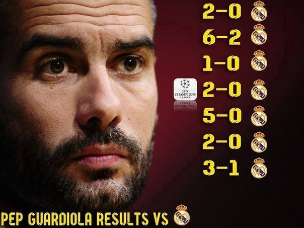 Карло Анчелотти и Хосеп Гвардьола никогда не противостояли друг другу. Но… Анчелотти ни разу не проигрывал "Баварии", хотя встречался с ней 6 раз: 4 победы и 2 ничьих. Гвардьола же из 15 матчей против мадридского "Реала" проиграл лишь дважды: 9 побед, 4 ничьи и 2 поражения. Стоит также отметить и тот факт, что Гвардьола никогда не проигрывал на "Сантьяго Бернабеу" в качестве главного тренера.