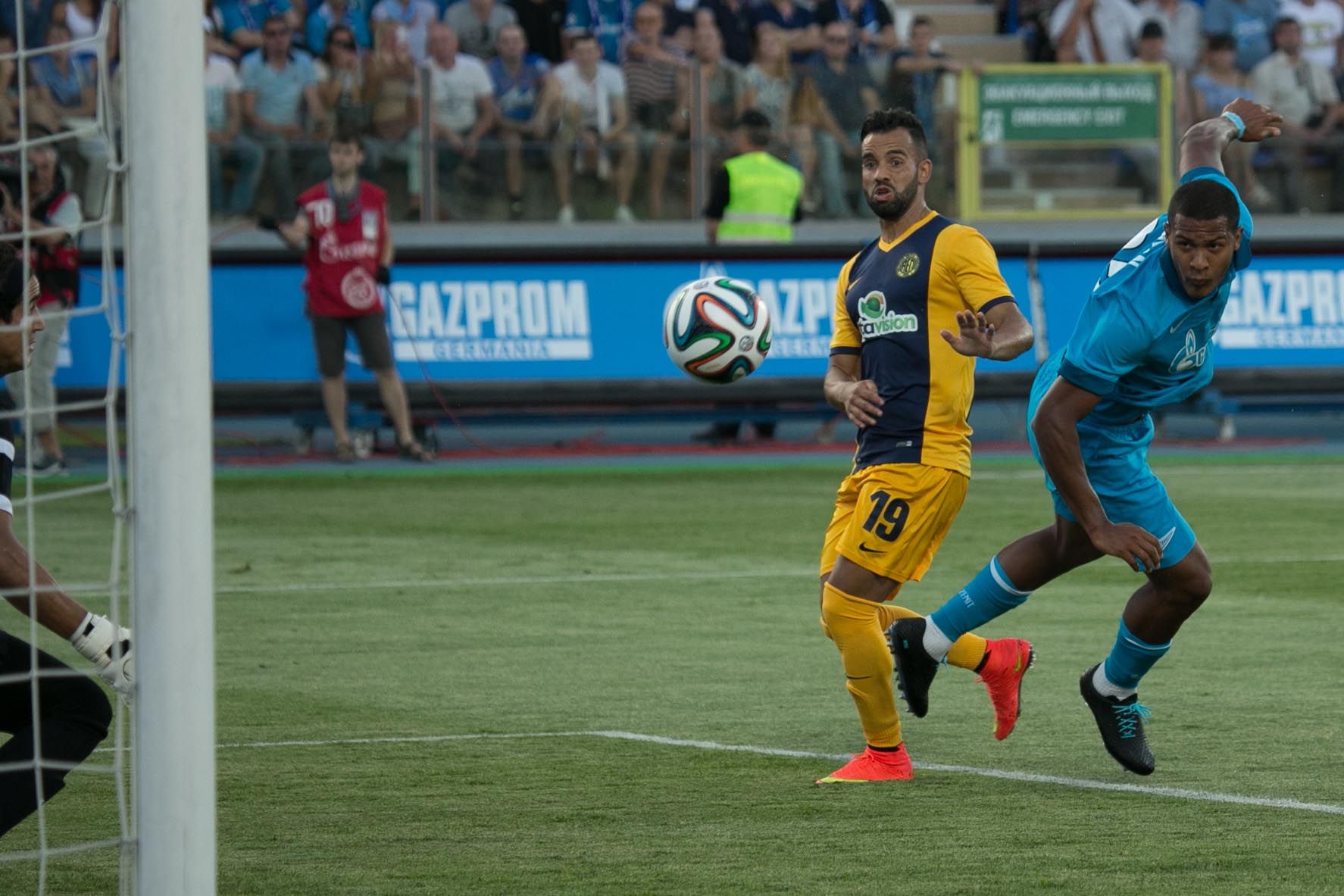 Киприотов решили "раскачать" фланговыми атаками. За первые 15 минут Смольников сделал три навеса справа, но даже минимальной опасностью у ворот Фегруша его забросы не обернулись. Потонул в защитных порядках АЕЛ и Рондон. Венесуэлец отчаянно топтал оппонентов, цеплялся за мяч, заставлял публику на "Петровском" взволнованно выдыхать, но даже на завалящий тычок в сторону ворот так и не сподобился.