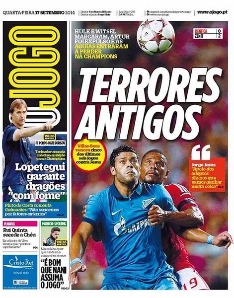 "Старые кошмары" - таков заголовок другой ведущей португальской газеты O Jogo. "Виллаш-Боаш выиграл в пяти матчах из шести последних против Жорже Жезуша", - подсчитало издание.