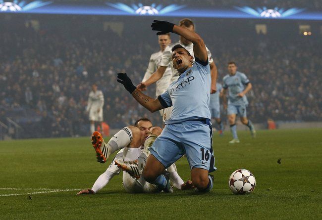 89-я минута. Эпизод с падением нападающего "Манчестер Сити" Серхио АГУЭРО (справа)