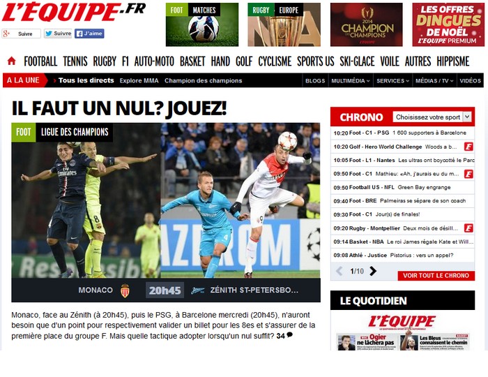 "СЭ" изучил публикации во французских СМИ в преддверии решающего для "Зенита" матча 6-го тура Лиги чемпионов против "Монако"