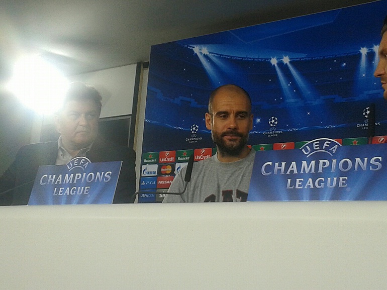 Пеп Гвардиола на предматчевой пресс-конференции был одет крайне неформально и был весьма оживлен.
