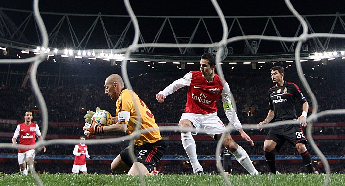 06.03.2012. Лондон. Робин ВАН ПЕРСИ забивает третий гол в ворота "Милана". Фото AFP