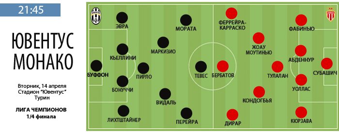 На выходных "Ювентус" умудрился проиграть главному аутсайдеру чемпионата Италии – обанкротившейся "Парме". Массимилиано Аллегри признал заслуженность поражения, но выразил уверенность, что с "Монако" его команда продемонстрирует совсем другой футбол. Вернулся в строй ведущий полузащитник "Старой синьоры" Пирло, не игравший с конца февраля. Последние дни он тренировался в общей группе, и в команде надеются, что 35-летний футболист сможет принять участие в матче. Нападающий Тевес, пропустивший два последних матча "Ювентуса" из-за небольшого повреждения, готов выйти с первых минут. |