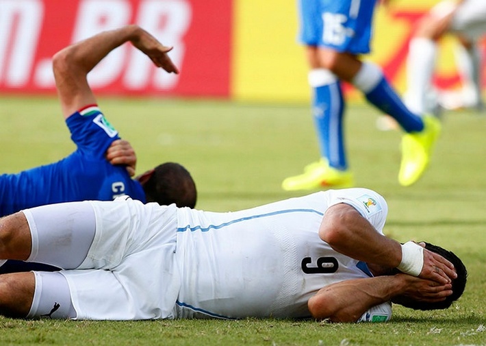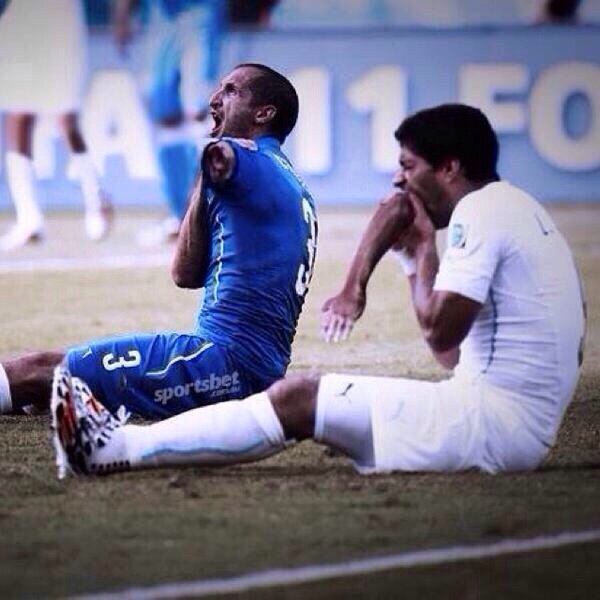 Предыдущая встреча уругвайца Луиса Суареса и итальянца Джорджо Кьеллини закончилась "каннибальским" скандалом. Ход скучного противостояния сборных в рамках группового турнира чемпионата мира-2014 в Бразилии был прерван на 78-й минуте: Луис Суарес в борьбе с защитником Джорджо Кьеллини в чужой штрафной укусил оппонента за плечо, после чего повалился на газон, держась за передние зубы. Игрок "Ювентуса", в свою очередь, отмахнулся, после чего требовал вынести нападающему предупреждение, демонстрируя арбитру следы укуса. Мексиканский судья Марко Родригес оставил эпизод без внимания.