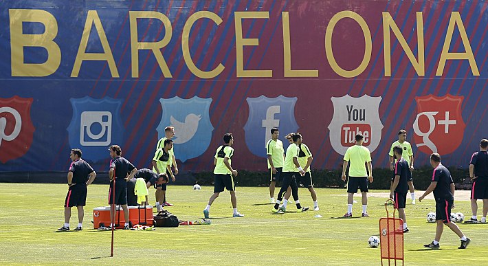 Двусторонка "Барселоны" проходила на треть поля. Больше всех голов забил Педро, и едва ли это может удивлять, потому что наиболее звездные футболисты смотрели за игрой со стороны. Помимо травмированного Иньесты, получившего повреждение в матче с "Атлетиком", в тренировке не участвовали еще ровно 11 человек. В них было несложно идентифицировать предполагаемый стартовый состав "Барселоны" на финал Лиги чемпионов: тер Штеген, Даниэл Алвес, Пике, Маскерано, Жорди Альба, Бускетс, Ракитич, Хави, Месси, Суарес и Неймар. То есть Луис Энрике явно давал понять, что вместо Иньесты будет играть Хави.