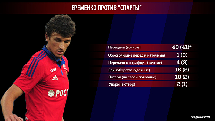 Справедливости ради, в матче со "Спартой" атака армейцев действовала симпатично. Забила дважды, могла бы и больше – не подведи реализация. Однако мог ЦСКА смотреться еще убедительнее, если бы на фоне партнеров не потерялся Еременко. Да, он заработал пенальти, неплохо прицеливался со средней дистанции, мог забить сам, если бы не выручил вратарь. Но кто создавал большую часть остроты? Тошич, бросавший правый фланг и смещавшийся в центр, да Дзагоев. Именно они вдвоем вращали атакующую карусель, соорудили на двоих первый гол, были главными действующими лицами при втором. А Еременко за игру за всю игру так и не выполнил ни одной точной обостряющей передачи. Да и не пытался.
