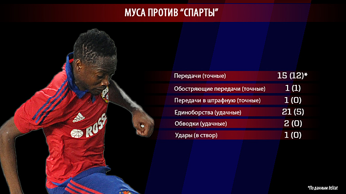 Проблема, о которой все уже устали говорить – ЦСКА очень нужен еще один форвард. Муса изводит соперников рывками, уходит на фланги, но часто покидает поле лишь с одной заслугой за пазухой – усталость опекающих его защитников.
