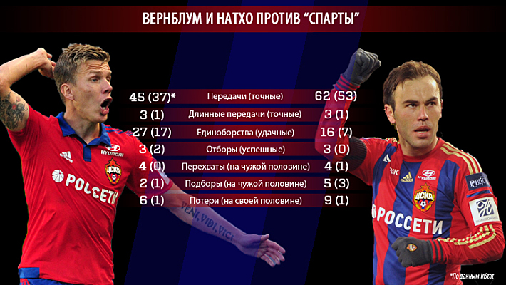 Кстати, ни в коем случае нельзя обелять и Вернблума, который тоже провел один из худших своих матчей за ЦСКА: 17 выигранных единоборств из 27, восемь неудачных верховых дуэлей, всего лишь два отбора и четыре перехвата при шести собственных потерях. И, что самое главное, позиционные ошибки и провалы при быстрых атаках "Спарты".