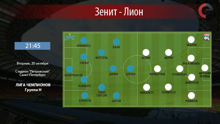 * "Лион" прибыл в Санкт-Петербург без пяти игроков основного состава. Из-за травм во Франции остались Бедимо (бедро), Фекир (колено), Фофана (голеностоп), Гренье (бедро), Калулу (голеностоп) и Бишевац (бедро). В то же время, в строй вернулся Морель, который из-за проблем со спиной пропустил пятничную встречу с "Монако" (1:1) в рамках 10-го тура чемпионата Франции. * В понедельник вечером "Лион" провел тренировку на стадионе "Петровский". В занятии приняли участие все 20 игроков французского клуба, которые прилетели в Россию. В их числе – экс-хавбек московского "Динамо" Вальбуэна. |