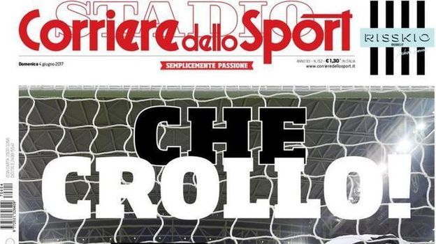 Целая полоса в газете посвящена событиям на площади "Сан-Карло" в Турине. При просмотре финала на большом экране случилась давка, ранено 1400 человек. 8 из них, в том числе ребенок, получили серьезные травмы.