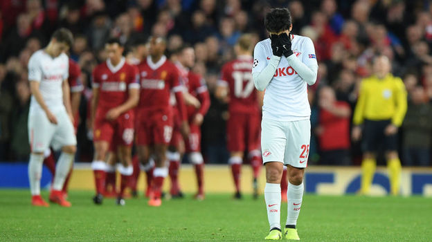 6 декабря 2017 года. Ливерпуль. "Ливерпуль" – "Спартак" – 7:0. Александр СЕЛИХОВ пропускает седьмой гол. Фото Александр ФЕДОРОВ, "СЭ"